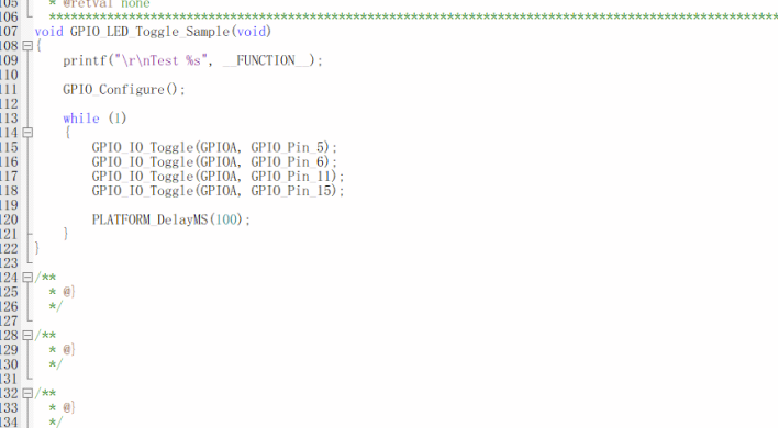 将gpio_led_toggle.c文件改动为如下形式,75行,80行,117行有改动,注意甄别
